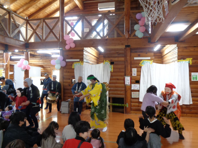 こども達はおかめさんと一緒に踊り、とても楽しそうでした。